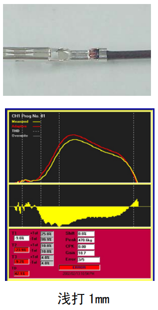 教示结束后自动进入OPE模式(操作模式)。以后的每一个压接波形都与基准波形进行精密比较。超出公差(公差可自由设定)的压力变化作为不良品被检测出。